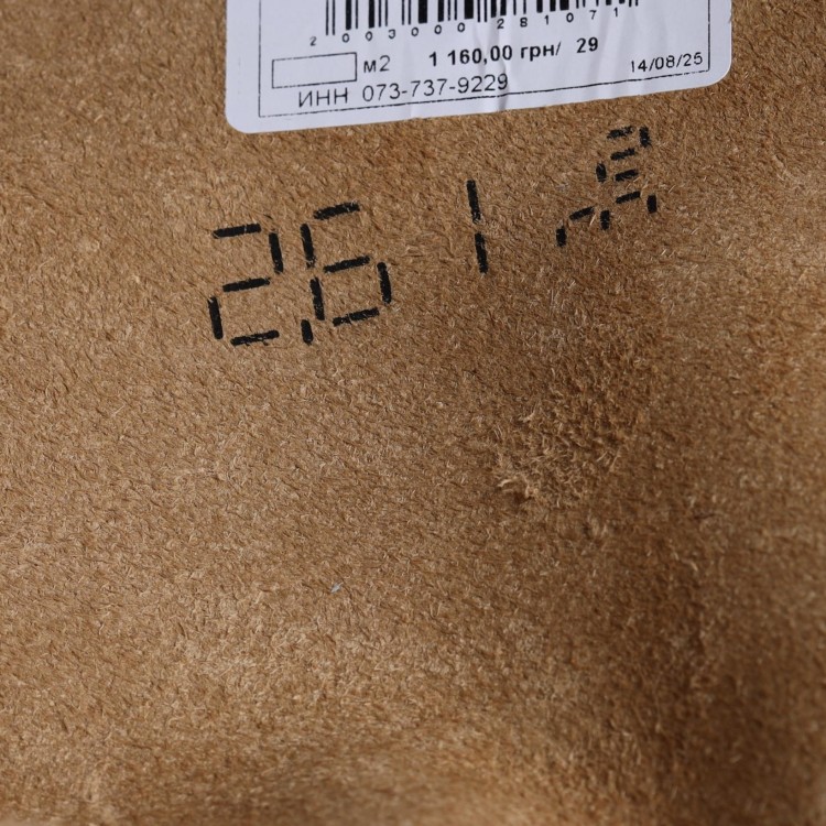 Середній розмір одного листа шкіри 2,50 м2 або 250 дм.кв.