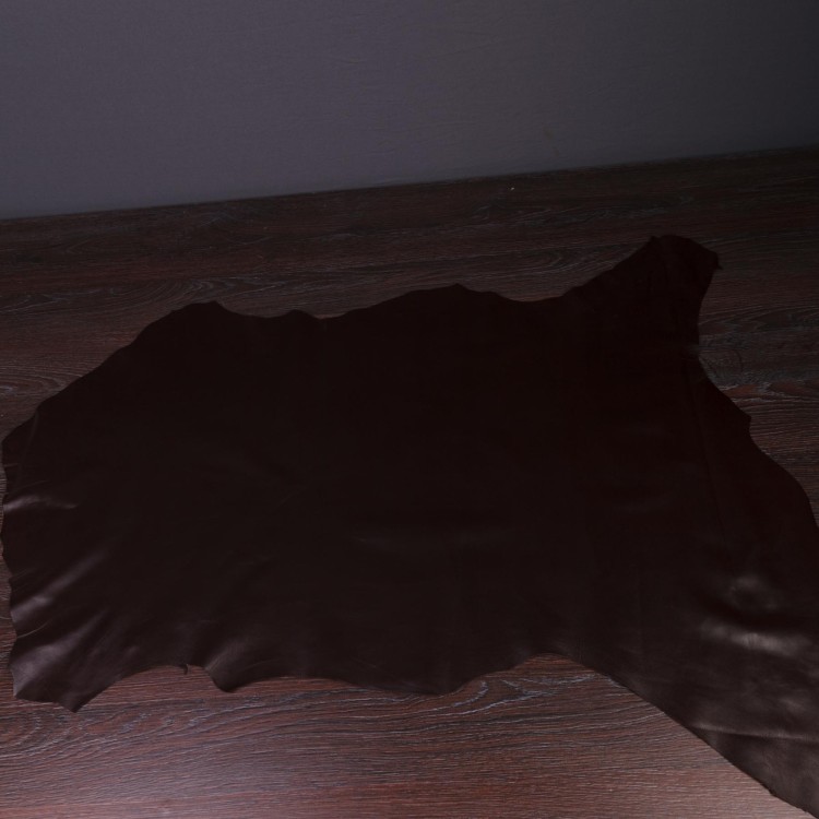 Одягова шкіра вівці барану товщина 0,5 мм Колір темний коричневий 19-1314 Seal Brown Використовується для виробництва одягу та галантереї. Середній розмір одного листа шкіри 5.75 фут2 Мінімальне замовлення - 1 лист шкіри.Характеристики