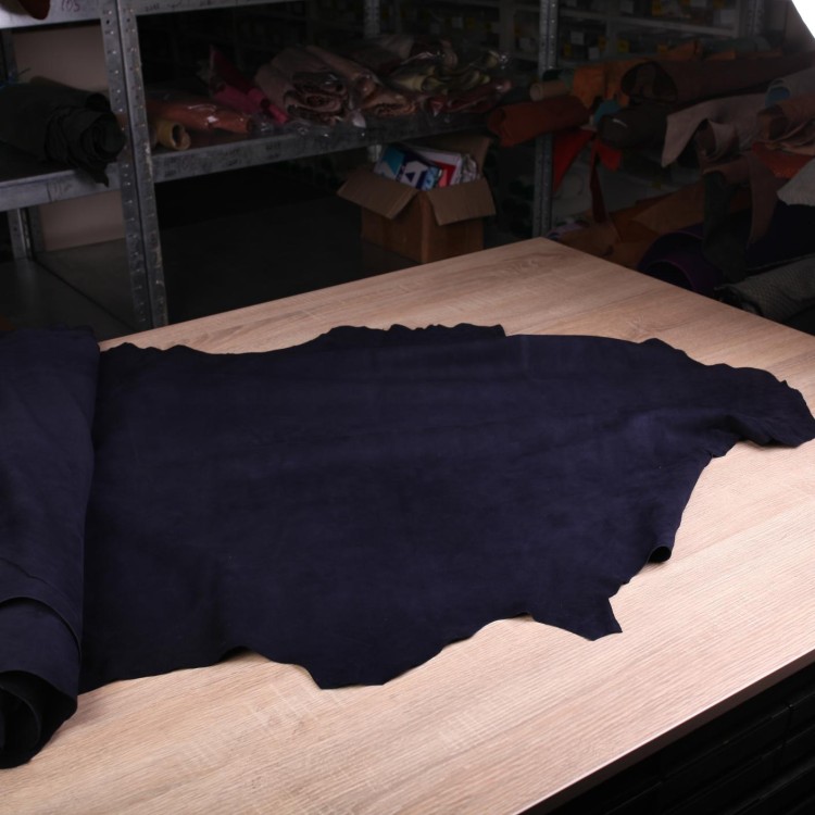 Натуральна замша велюр одяговий вівця темного синього кольору.